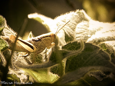 I absolutely love this picture! I took the original in my garden, there were grasshoppers all over my giant (and they really were giant!) sunflowers. This one was the only one that held still long enough to take a picture of. I love the fact that you can see through his back leg, it really accentuated the stripes. The other thing about this picture that I am absolutely in LOVE with is the lighting, I fixed the lighting in light room (sorry for every other time I called it light box instead. . .) and made it look like a sunrise in a somewhat shady forest.