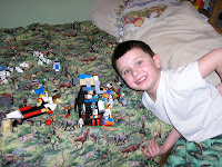 I know that it came, and I know that we did various things this month, but where did it go?!?!?!? I have decided that since it isn't really winter but it really isn't spring that it really wasn't January...Cody (my older brother) dubbed this new season "Sprinter". Well bum lamb season has definitely started and we now have instead of just two bummers, we now have three more. School is flowing right along and I can't believe how far I am in some of my subjects...and how neglected others are (history anyone?). This is a picture of Hugh (6) with the latest Lego creation...