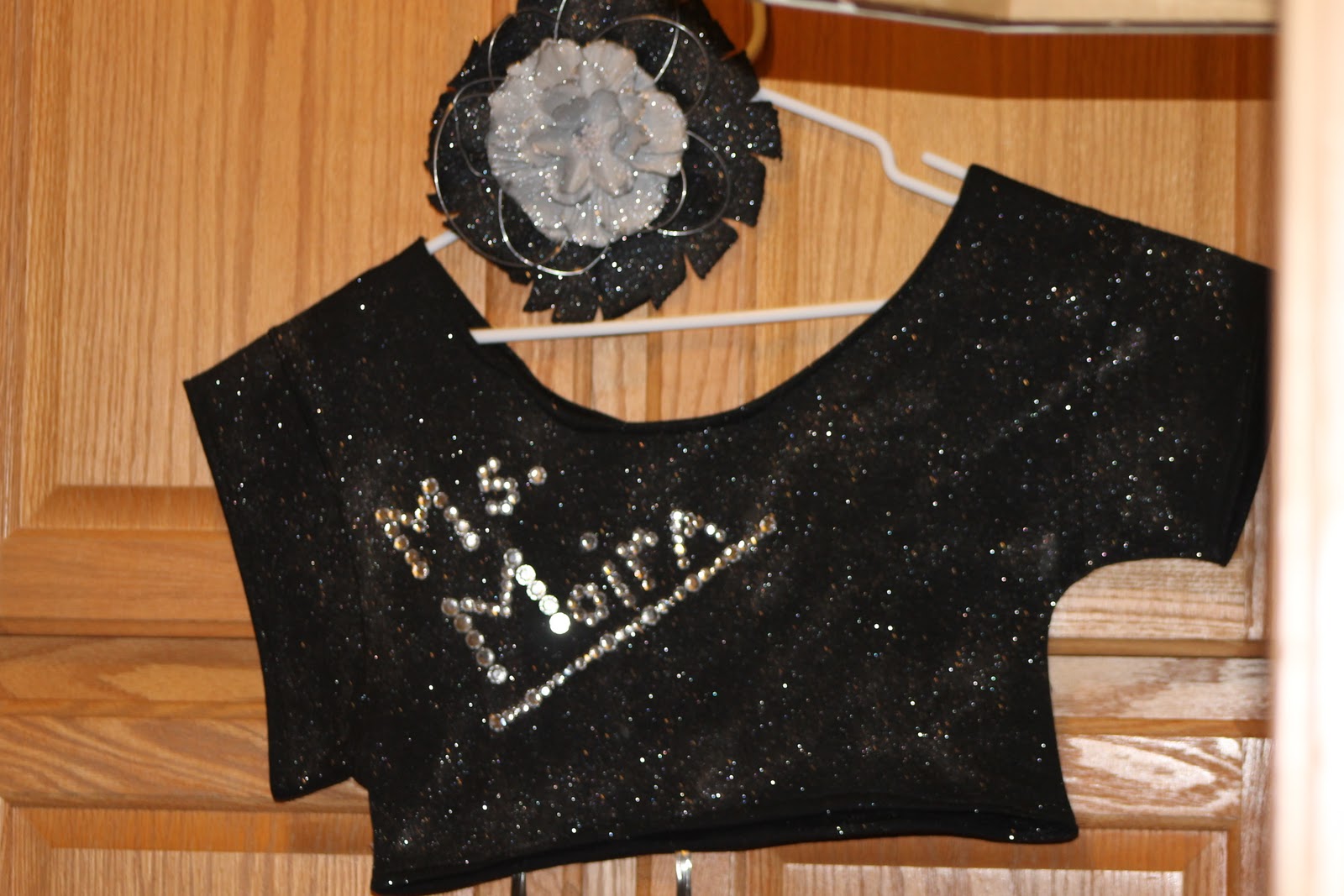 I dance with the Va-Dels dance group in Tremonton UT. My class was given the assingment of creating a "hip-hop" outfit with a pair of black and silver high tops and a lavendar tank top. To keep with the theme of black-silver-purple my mother started cutting apart a black sweatshirt from Walmart. Then she quit and I finished. This is how it turned out: