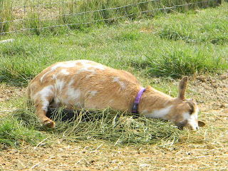 This would be her favorite way of sleeping. . . In the feed bucket, she almost looks dead. . .